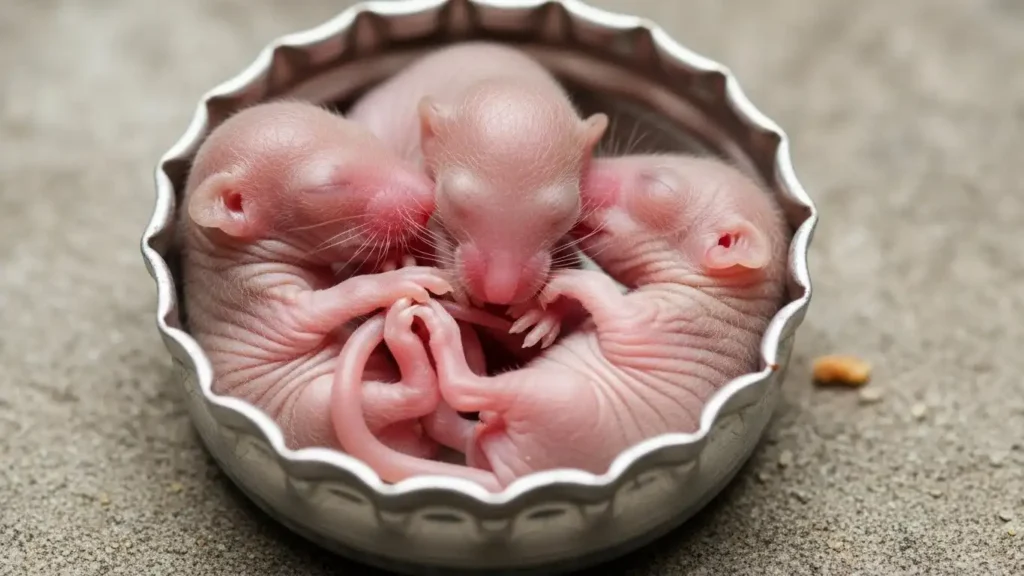 - Average litter: 3–6 hairless pink babies, each smaller than a jellybean.